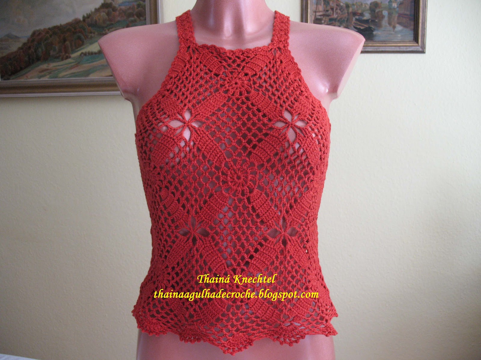 Camiseta na cor: Vermelha com linha grossa para crochê 100% algodao, agulha 2-1,75mm